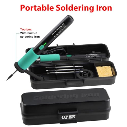 Draagbare soldeerbout: door 3 seconden lang op de knop te drukken schakelt het apparaat aan/uit. Het maakt gebruik van een intelligent temperatuurcontrolesysteem voor een eenvoudige bediening. De gereedschapskoffer bevat een geïntegreerde soldeerboutstandaard voor eenvoudig opbergen.